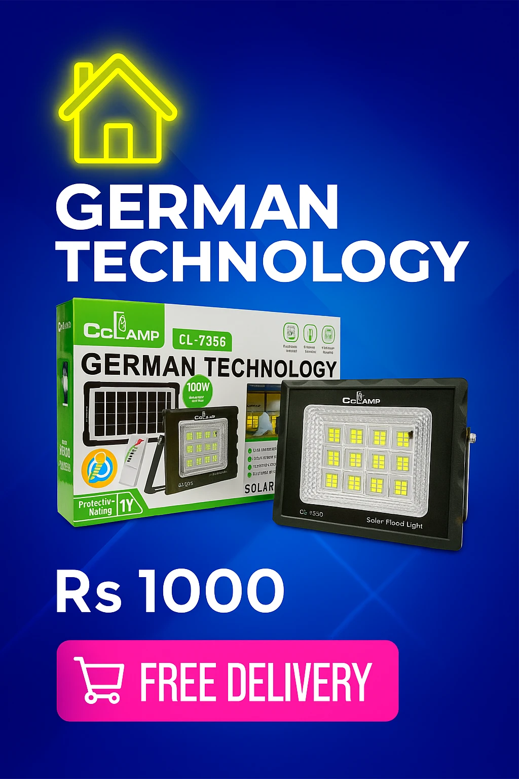 💡 Power: 100W Super Bright LED (68PCS Beads)